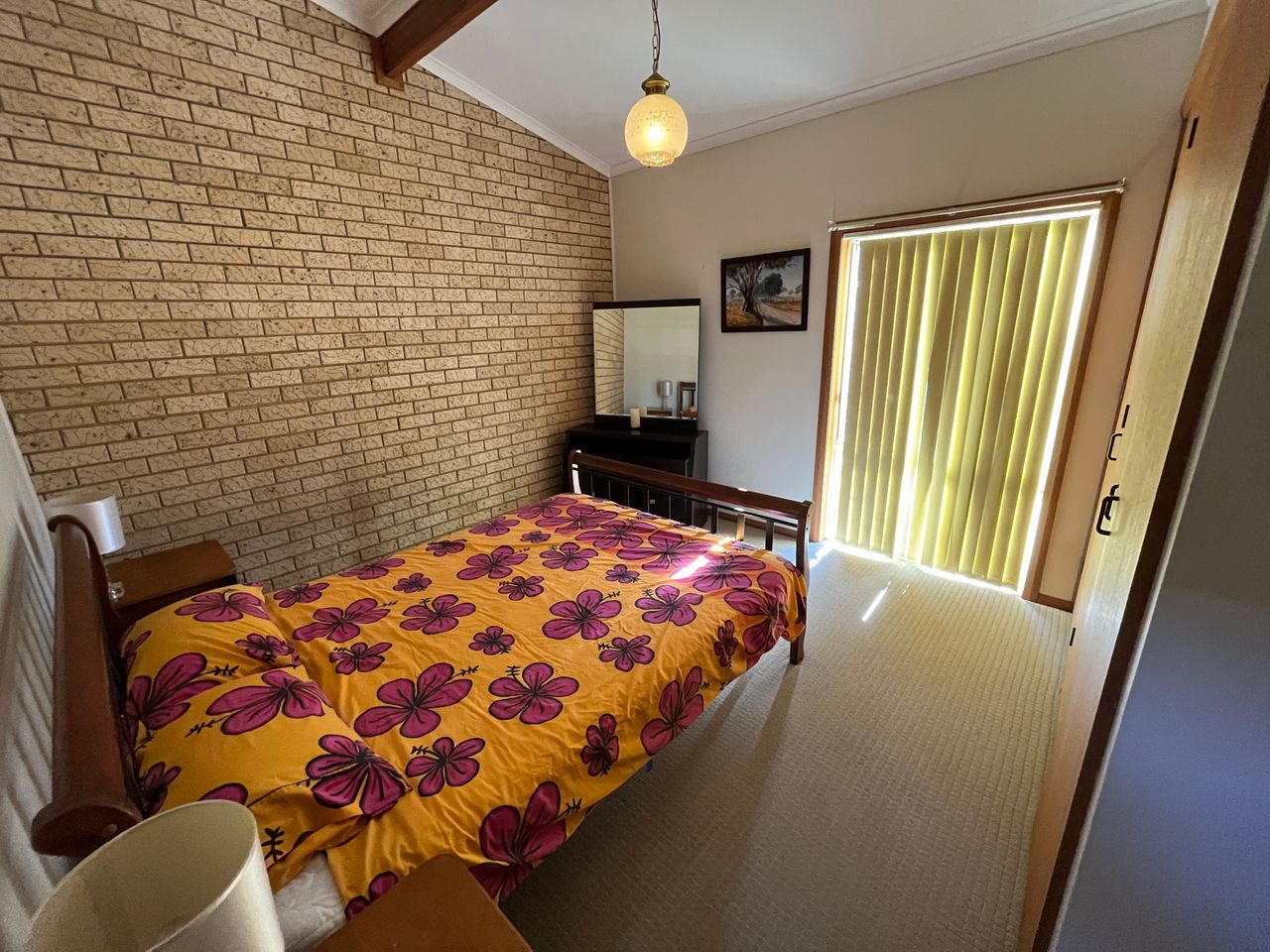 Sleeps 5. 1 Queen, 1 x single bunks + 1 Single. Internal access from the carport at the rear. Fully self-contained with internal laundry. Shower over bath.
