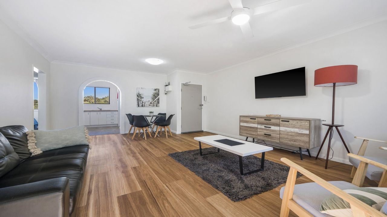 Enjoy your stay on the beautiful Mid North Coast at this contemporary styled property you will feel relaxed from the moment you walk in; it is your own oasis located 150 meters walk to beaches and iconic coastal walks. 12/5-7 Flynn Street is conveniently located in the iconic Flynns Beach area. There are many cafes and restaurants within walking distance to choose from and only a short 5-minute drive to the heart of Port Macquarie's town center. Port Macquarie town center has two shopping centers, many specialty stores, a marina, restaurants, pubs, cinema, entertainment center and more. The apartment is located on the second floor. This means that there are 2 flights of stairs from ground level, and additional flight of stairs if coming from the basement'. Sleeps 4 - bedding configuration 1 queen size bed and 1 double size bed, features include updated kitchen, fast WIFI, large smart TV, wall mounted air conditioner in living area and ceiling fans. The open living dining area flows effortlessly out to a balcony that has you feeling like you're in and amongst the trees.The apartment is situated on the second floor, accessible via a common stairwell directly from the basement car park. The apartment complex does not have a lift. Single security car space and fully equipped laundry complete your experience. After a fun day at the beach or after enjoying some of the local sites, why not sit back and relax with the sound of the ocean, it is sure to help you relax and unwind.Please note this property is located on the top floor