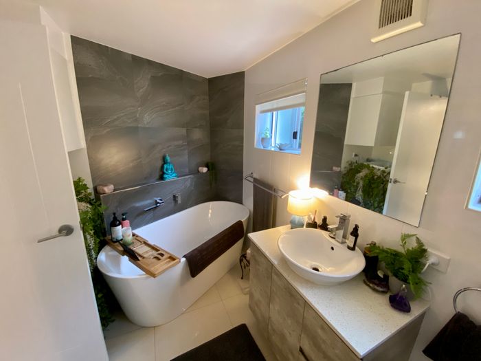 What a location! Mere steps to the water's edge & just 200 m to a boat ramp. Take advantage of the unique position of this stylish unit. Looking directly onto Stingray Creek, with expansive water views. Enjoy outdoor entertaining and relaxation right on the water’s edge and take in the views of the breathtaking North Brother Mountain. After a day out on the water, relax with a glass of wine in the deep soak bathtub or enjoy the spacious shower with dual shower heads.