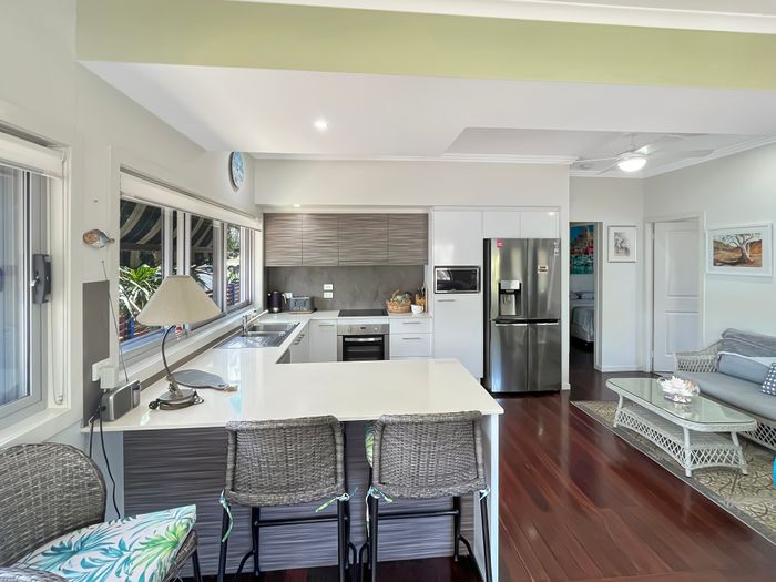 We had a great time at Stingray lodge. Everything you need is there. Clean, modern, cosy, air con and room for a boat. The location is awesome right opposite the creek, boat ramp and pathway. Take your bike for an easy ride along the river. A great spot for a relaxing break away.